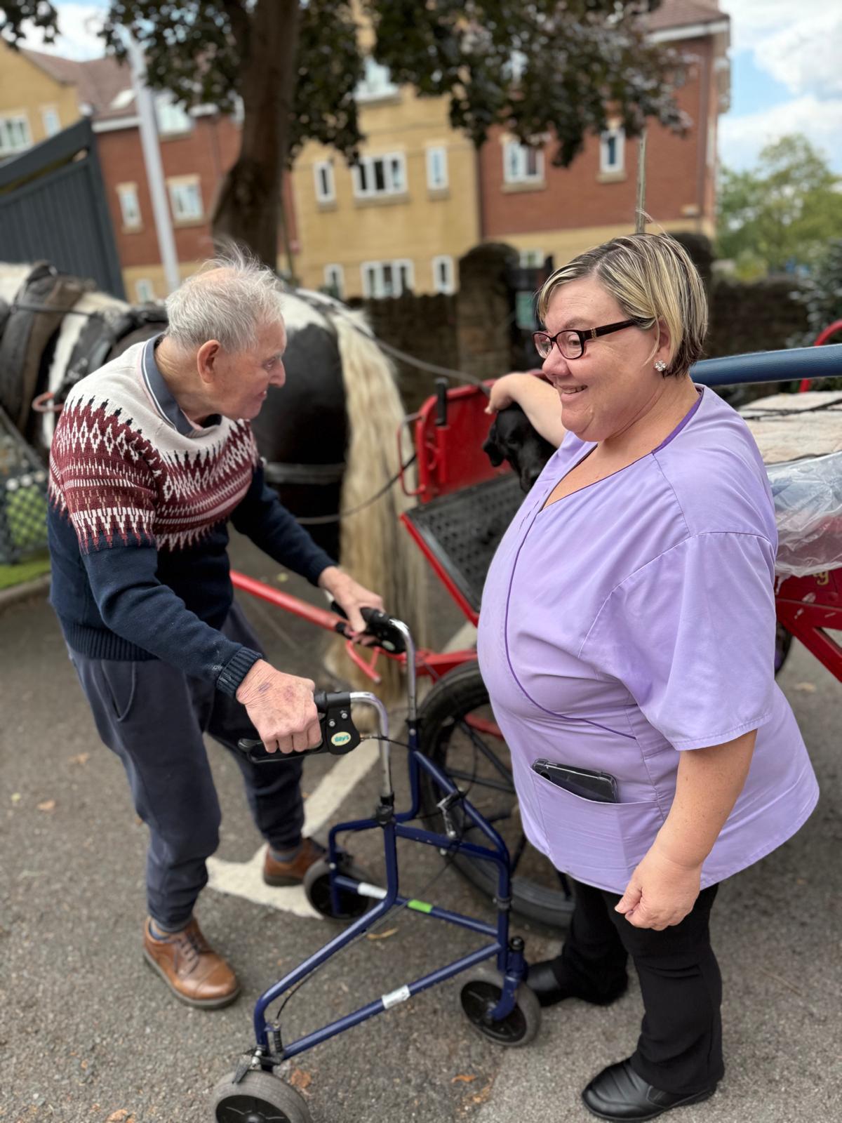 All our residents and staff at Edward House had a lovely time recently when they welcomed shire horse George to the home. He was an instant hit with everyone who really enjoyed making a fuss of him. George lapped up the attention, and if he could talk we are sure he would be saying “when can I come back and see these lovely people again?”