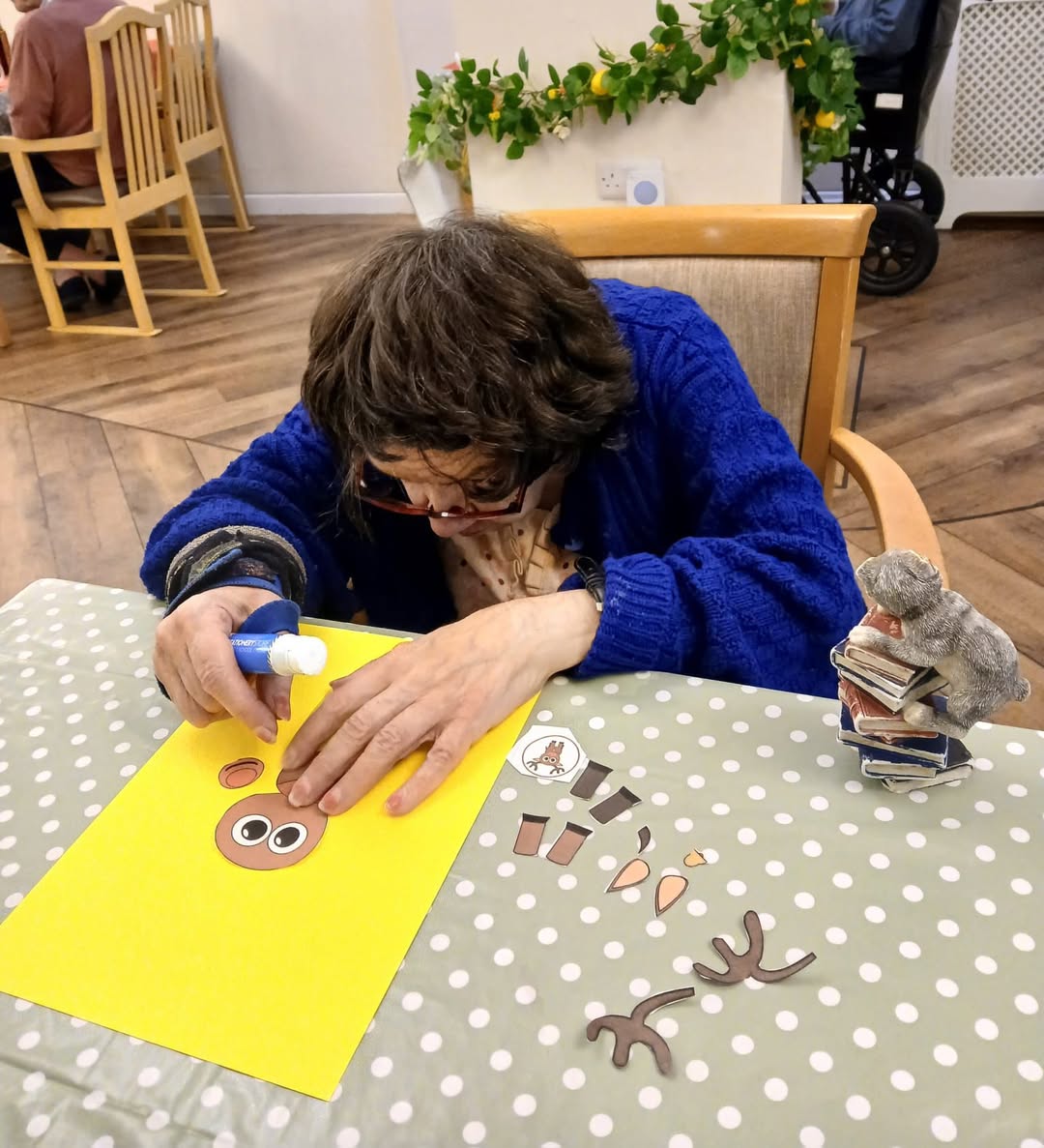 Our residents are already getting into the Christmas spirit at Edward House. This week, they have been involved in a lovely Arts and Crafts session where they were making cards for their loved ones. Lots of fun and great for helping with engagement and fine motor skills.