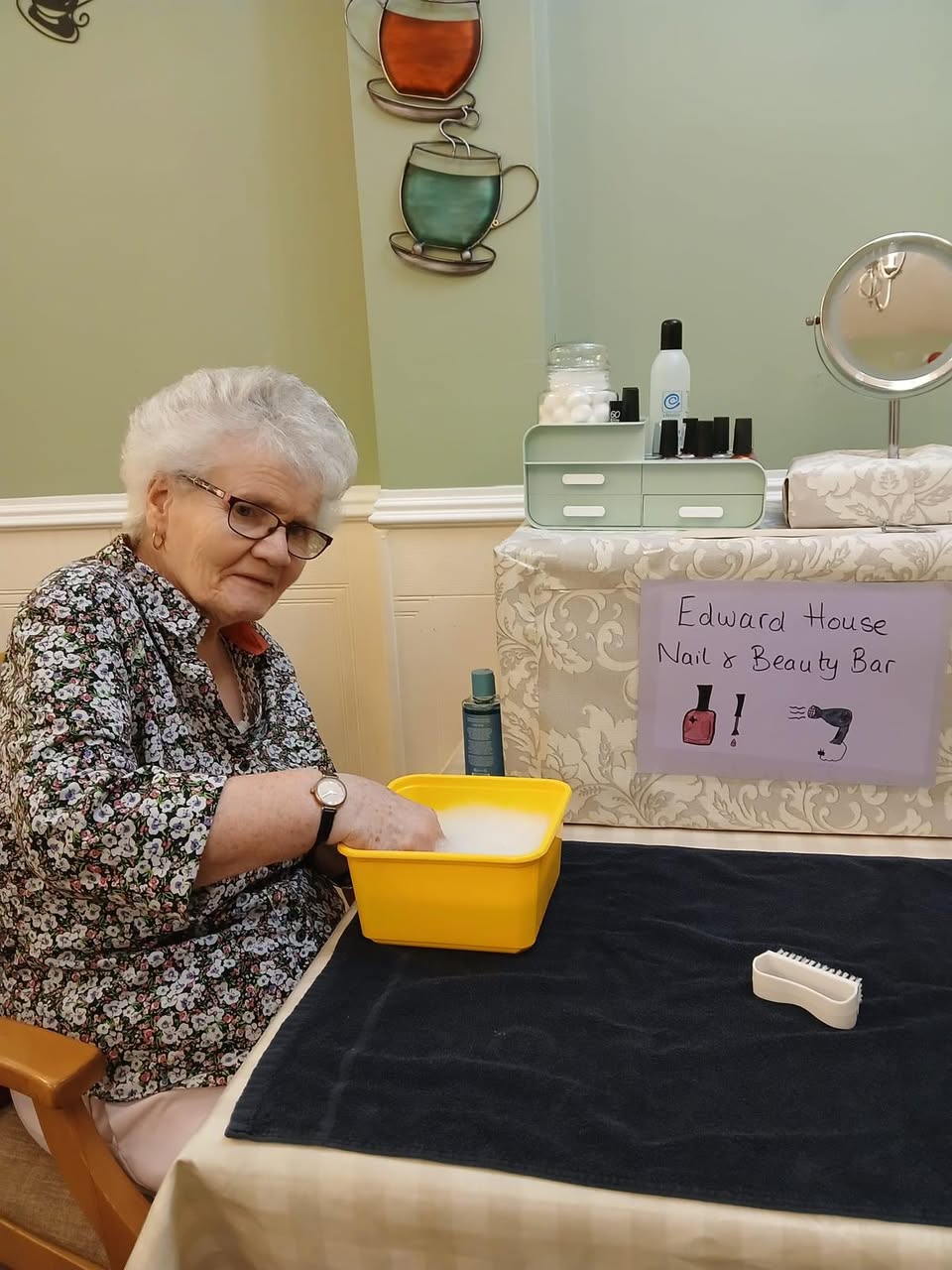 It’s great to get pampered, and at Edward House, we like to pamper our residents as often as possible. So recently we had our local manicure marvel visit the home and work their magic. Both ladies and gents were invited to enjoy the simple pleasure of a decent manicure…and enjoy they did as you can see from the smiles on their faces. A lovely treat for everyone!